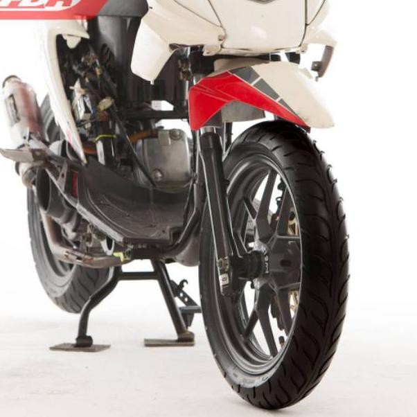 Dipadukan velg racing jari jari ban besar, shock upside down ohlins, knalpot racing.