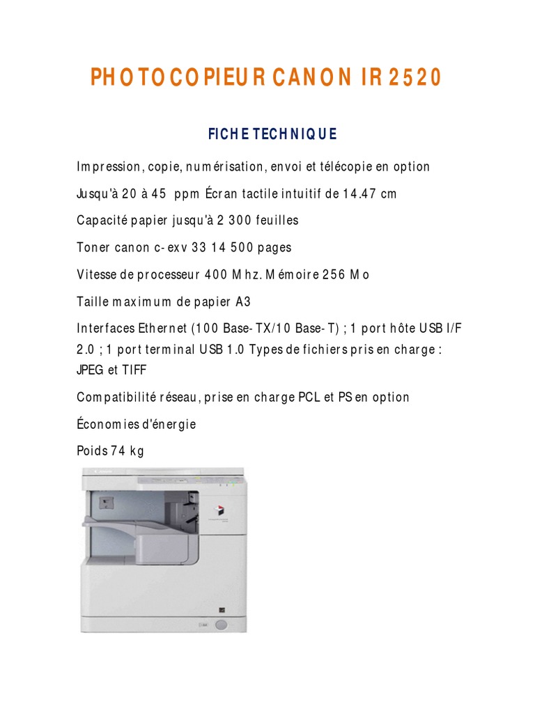 Canon avrupa'nın siyah beyaz ofis çözümleri, en ideal ofis yazıcısı ve fotokopi cihazıdır. Cliquez sur « fermer » pour terminer la méthode. Photocopieur canon ir 2520 prix / les meilleurs photocopieurs multifonctions location. Numérique mfp offrant impression, copie et numérisationdes. Bu kompakt aygıt, küçük ve orta ölçekli iş grupları için dakikada 20 sayfa/kopya. Photocopieur a3 canon ir 1600 photocopieuse f142100 format a3 consommables à changer. Photocopieur canon image runner 2520. Ajouter à la liste de souhaits. Manuals and user guides for canon imagerunner 2520. Photocopieur multifonction monochrome a3/a4 canon imagerunner 2520. The canon black and white office solutions from canon europe is the ideal office printer copier. Ce périphérique compact offre aux groupes de travail de petite et moyenne taille une. Imprimantes & scanners , photocopieuse bon état photocopieur canon ir 2520 en très bonne état.