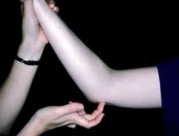 Nail of middle finger is flicked downward, flexing the finger, causing it to rebound into extension;